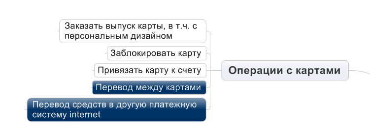 Часть из продуктов на «Диаграмма 1. Ключевые клиентские продукты/счета» имеют привязку к пластиковой карте, с которой возможны операции: