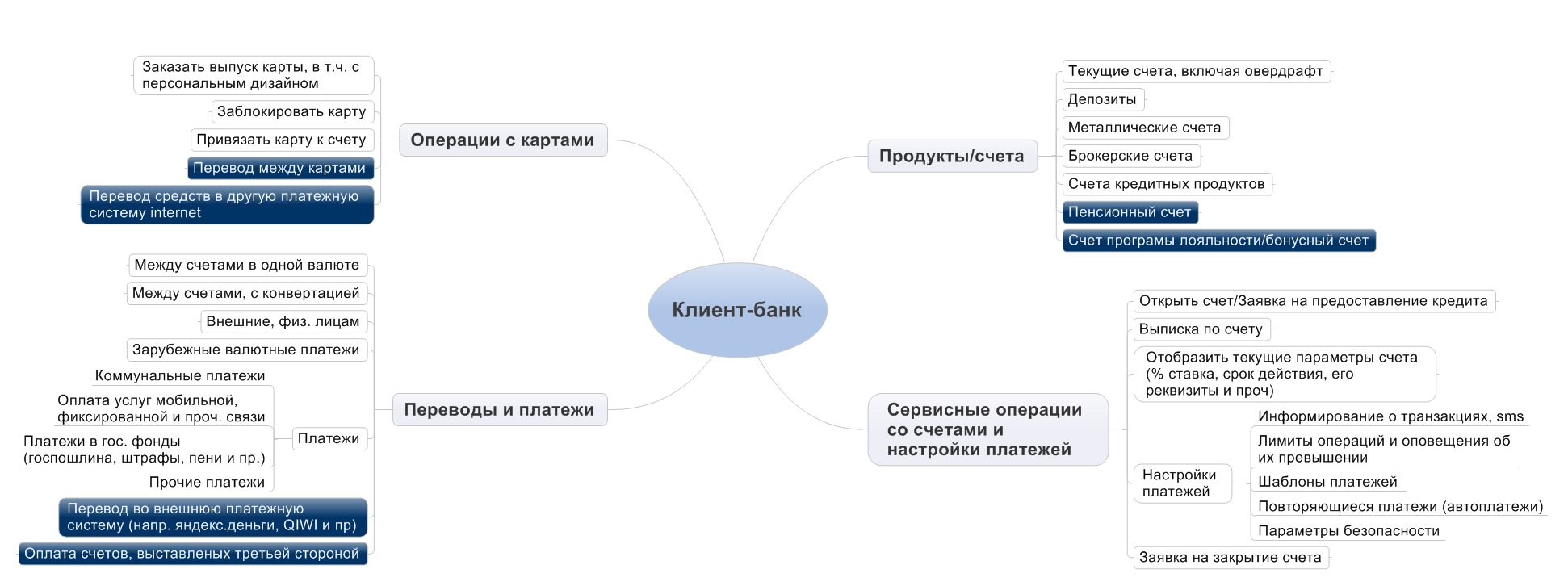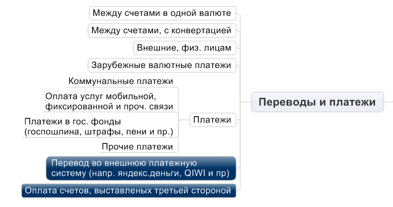 Для справки приведём общую диаграмму продуктов и операций с ними при текущем уровне развития интернет-банкинга в РФ.